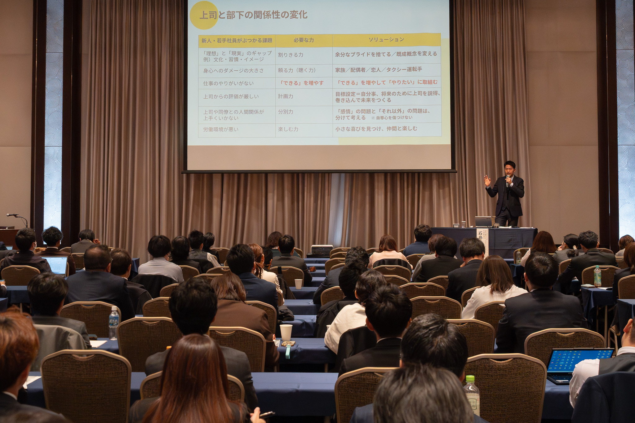 「心理的安全性」をテーマにした第2分科会(担当:人と組織の未来委員会)では、金沢工業大学大学院 イノベーション研究科 准教授・博士(メディアデザイン学)/株式会社LOCOK 代表取締役の石井 大貴氏の進行のもと、関係性向上のスキルを実際に体験しながら学びました。心理的安全性は上司と部下が共につくり上げるものだとお話がありました。