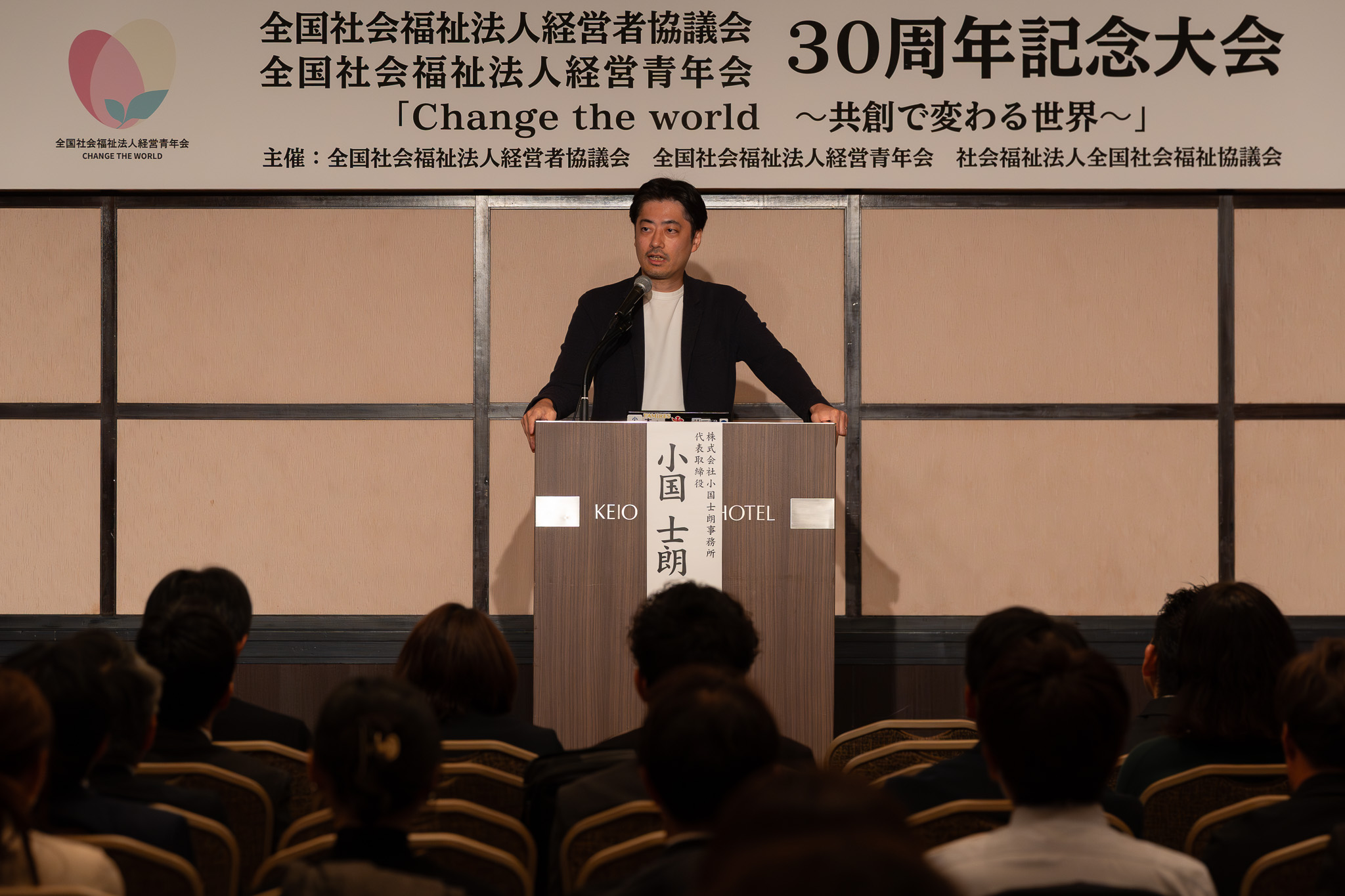 全国青年会は11月4日・5日の2日間、東京都にて全国社会福祉法人経営青年会 30周年記念大会を開催しました。今年度の全国大会は、「Change the world ~共創で変わる世界~」をテーマに掲げ、卒会者の方も含め総勢585名にご参加いただきました。